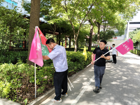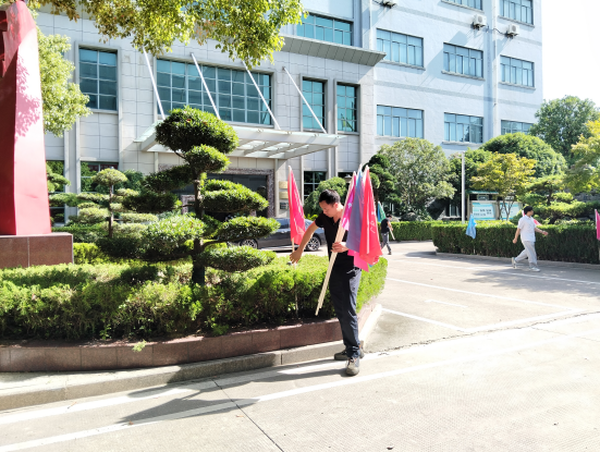 慶典前夕,行政人員精心在廠區花壇一圈插上五彩旗。它們像是一群剛被喚醒的彩色精靈,舒展著鮮亮的裙擺。微風拂過,便踮起腳尖跳起歡快的舞蹈,紅的熱情、黃的明媚、藍的靈動……彼此追逐嬉戲,發出清脆的“沙沙”聲,仿佛在哼唱著慶祝公司25載成就的歌謠。偶有風勢稍大,它們便舞得更盡興,獵獵作響,將喜悅撒向廠區的每一個角落,讓濃濃的慶典氛圍愈發鮮活起來。